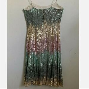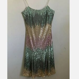 Badgley Mischka Natalie Dress Mint Sequin Multi Fit Flare Spaghetti Strap