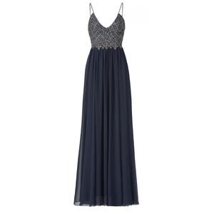 Blue chiffon (100% Polyester). Gown. Sleeveless. V-neckline. Hidden back zipper with hook-and-eye closure. Fully lined