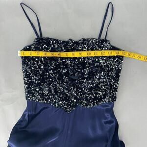 Badgley Mischka Navy Sequin Jumpsuit Womens 6 Formal Gala Evening