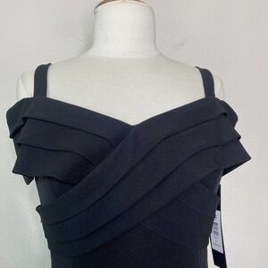 Badgley Mischka Off the Shoulder Criss Cross Chest Black Dress NWT 8