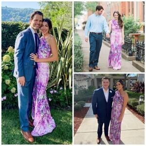 Badgley Mischka One Shoulder Purple Orchid Floral Gown Size 0