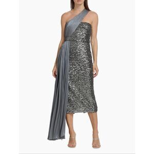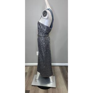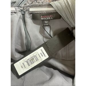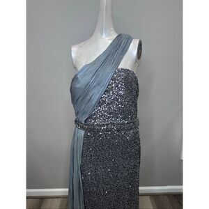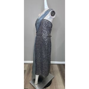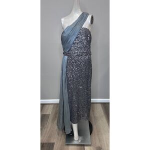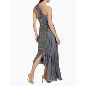 Badgley Mischka One-Shoulder Embellished Cocktail Dress in Pewter US 12 $595