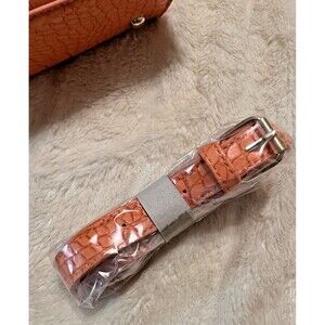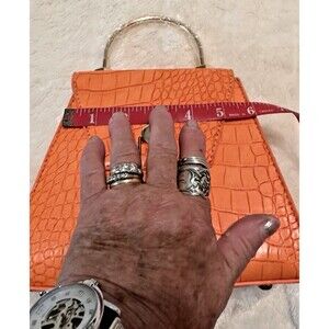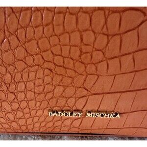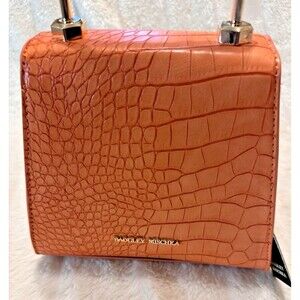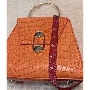 Badgley Mischka Orange Frame Bag Purse Gold Hardware Croc Vegan Leather NWT