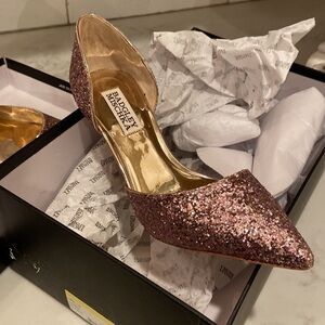 Badgley Mischka Ozara Pointed Toe Stiletto Heel Rose Gold Glitter new