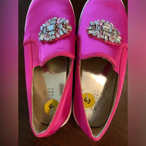 Badgley Mischka PINK SATIN Delight Jewel Ornament Slip On Sneakers Women's Sz 5