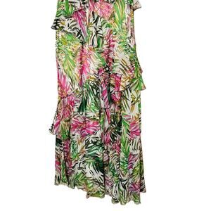 Badgley Mischka Palm Print Ruffle Pink Green Maxi Dress Size 4