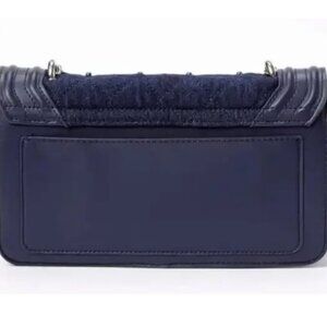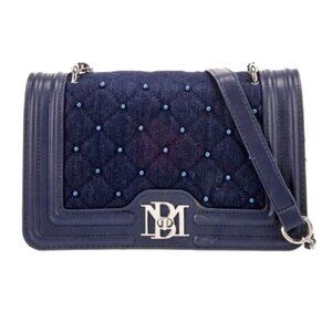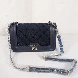 Badgley Mischka Pearl Diamond Quilted Denim Blue Vegan Leather Crossbody NWT
