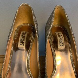 Badgley Mischka Peep Toe Gold Glitter Heels