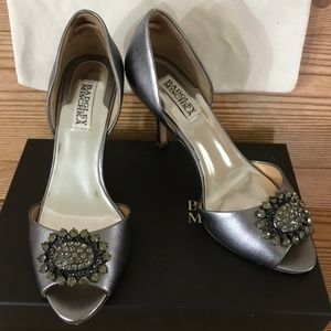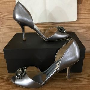 Badgley Mischka Pewter Lacie d'Orsay Leather Heels
