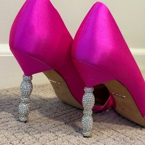 Chic pink heels with dazzling crystal detail. Perfect for a bold fashion statement.