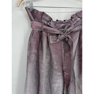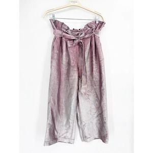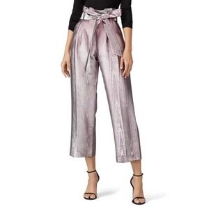 Badgley Mischka Pink Silver Metallic Wide Leg Paperbag Tie Waist Pants Size 14