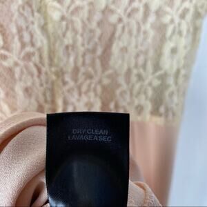 Excellent used condition! Light peach/pink sheath dress with lace panels and bow front. Sleeveless with a crew neck style. Below the knee midi length with zipper and hook & eye closure.