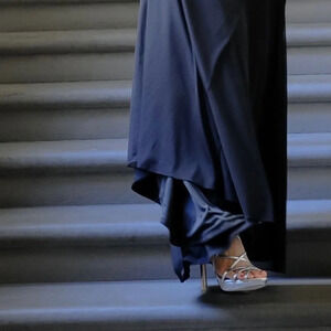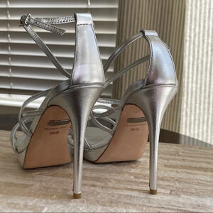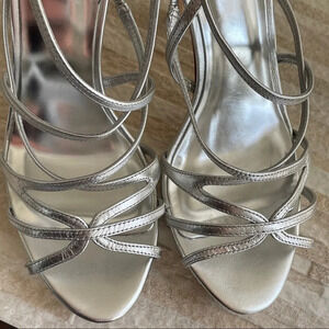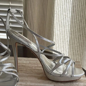 Badgley Mischka Platform Heels in Sexy Silver. These beauties have been to Florence, Italy and only worn one time! See pictures. It was a short walk from our hotel to the Palazzo Vecchio where we were married. 5-inch heel. Can no longer wear heels due to knee surgery. Leather sole. Size 9.5 - medium width. Dust bag included. Super sexy! And yes, the Bride wore black.