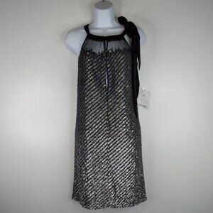 Badgley Mischka Platinum Sequined Halter Dress Size XS. NWT