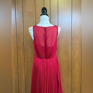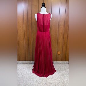 This pleated gown from Badgley Mischka is crafted of lightweight chiffon with a high-low hem.