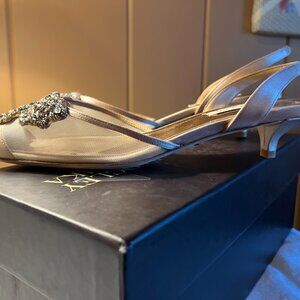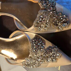 Never worn, beautiful, pale pink, kitten heel embellished slingbacks. Bought them for my wedding but ended up choosing something different. Super comfortable low heel and gorgeous details.