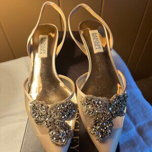 Badgley Mischka Pointed Toe, Kitten Heel Pale Pink Vera Embellished Pump, Size 8