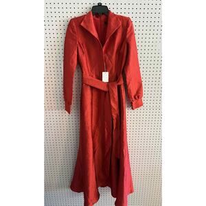 Make a statement in this pre-loved Badgley Mischka gown! The stunning red jacquard fabric and elegant long sleeves create a sophisticated look. Perfect for your next special occasion. In great condition, ready to make you feel fabulous!