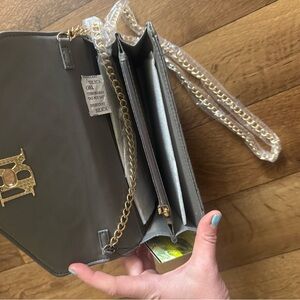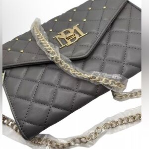 Badgley Mischka Quilted Black and Gold Chain Bag