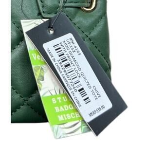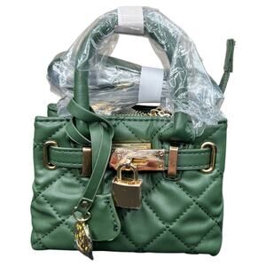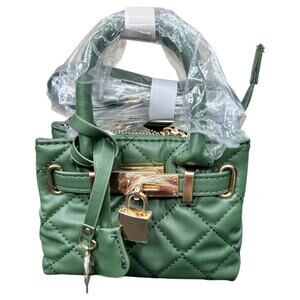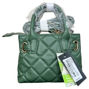 Badgley Mischka Quilted Green Mini Tote Bag with Gold Charm