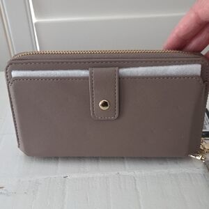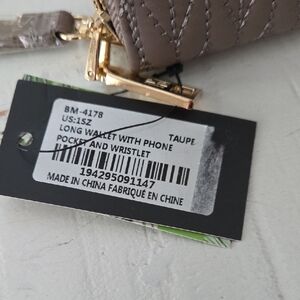NWT - Badgley Mischka Taupe wallet. Chic quilted design with gold accents. Ideal for daily essentials.
