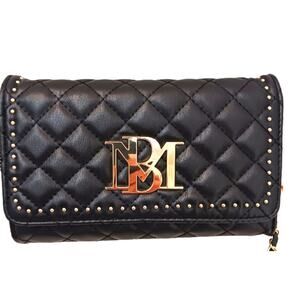 Badgley Mischka Quilted Wallet on a Chain Purse Black Crossbody Gold Studs Glam