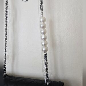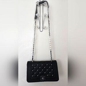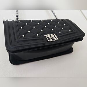 Badgley Mischka Quilted letter Turn lock Crossbody Bomber Pearls Black NWT