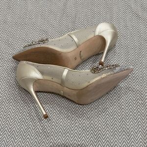 Badgley Mischka Quintana Crystal Embellished Pointed Pump Ivory Satin Size 6.5