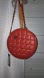 badgley mischka Chic red quilted mini bag. Adorned with pearls and gold chain. Ideal for stylish outings. they're all small little black spots on the inside that are noted in the picture