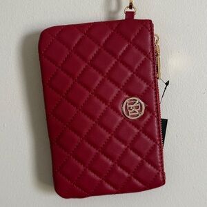 Badgley Mischka Red Quilted Wristlet with Gold Logo