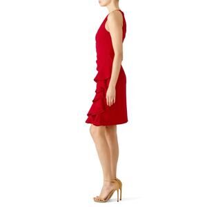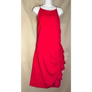 Badgley Mischka Red Ruffle Halter Sheath Dress 20