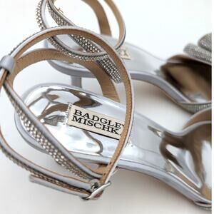 Badgley Mischka Remi Crystal Embellished Ruffle Bow Sandals Womens Size US9 EU40