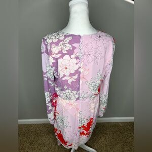 Badgley Mischka Renee Pleat A-line Georgette Wrap Pink Floral Print Dress