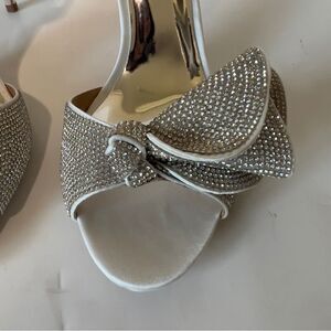 Badgley Mischka Rennie Rhinestone Soft White Stiletto Heel Bridal Sandal Size 8