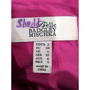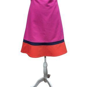 Badgley Mischka Retro Fuchsia Orange Stripe Hem A Line V Back Sleeveless Dress, Size 2