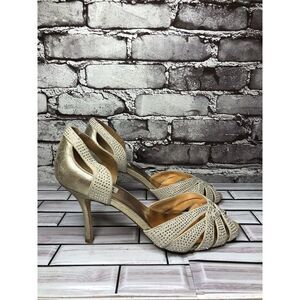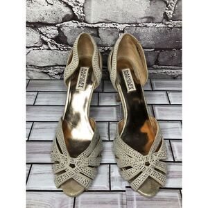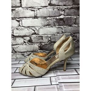 Badgley Mischka Rhinestone Embellished Silver Shimmer Peep Toe Heels Women 9.5US