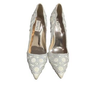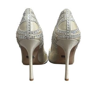 Badgley Mischka Rouge Embellished Dress Pumps Heels in Ivory Satin Pointed Toe