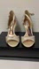 Badgley Mischka Roxy Ankle Strap Evening Shoe Gold and Cream Heels, very stylish