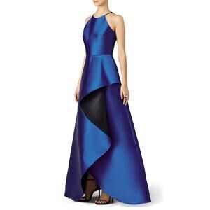 Badgley Mischka Royal Blue and Black Reverse Ruffle Structural Gown Sz 4