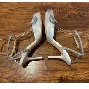 Step into elegance with these Badgley Mischka Sacred soft white pumps, a beautiful addition to any bridal ensemble or special occasion outfit. In size 5.5, these pumps offer a comfortable and stylish fit. The classic design and soft white hue ensure they'll complement any dress or gown. Get ready to walk down the aisle or dance the night away in these exquisite heels! Pre loved, great condition.