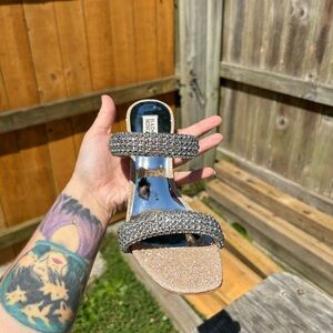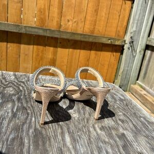 - Badgley Mischka Sade Jeweled Double-Band Stilettos Heels 7 rhinestone gold