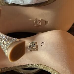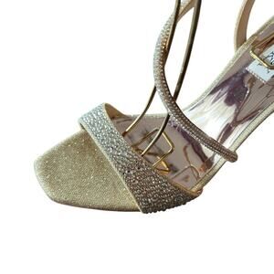 Badgley Mischka Sally Curvy Heel Stiletto Sandal Gemstone Plantino Gold NEW 10