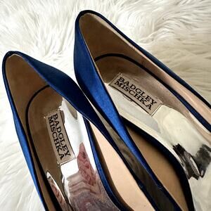 NWOT Badgley Mischka Royal Blue Satin Cher Pumps w/ Crystal Brooch Sz 10