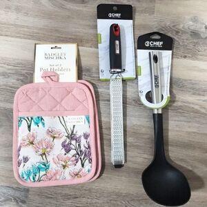 Badgley Mischka Set of Two Pot Holders with Grater and Ladle Gift Set - New Tags