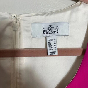 Badgley Mischka Sheath Dress Size 12 Cream Magenta Pink Orange Colorblock