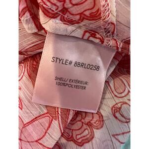 New Badgley Mischka Sheer Flowing Tunic Top in Pink Floral Print, size XL. 100% polyester with dolman style elbow length Sleeves and metallic gold thread running through. Button front