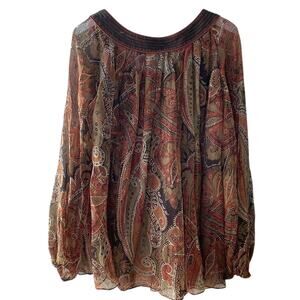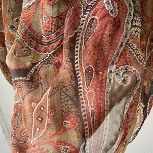 Badgley Mischka Silk Blouse M Paisley Semi Sheer