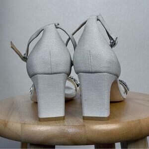 Badgley Mischka Silver Crystal Block Heel Sandals 10 Wedding Evening Bridal Shoes Sparkly