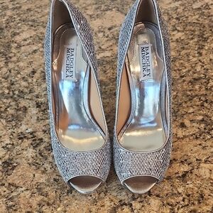 These stunning silver heels feature a dazzling glitter finish that catches the light beautifully. With a classic pump style and a high, slender heel, they offer an elegant silhouette. The slight platform adds comfort, making them perfect for a night out.