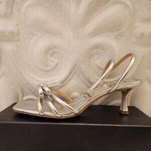 Badgley Mischka Silver Leather " Loyalty Knot" Sandals. NIB. Size Various